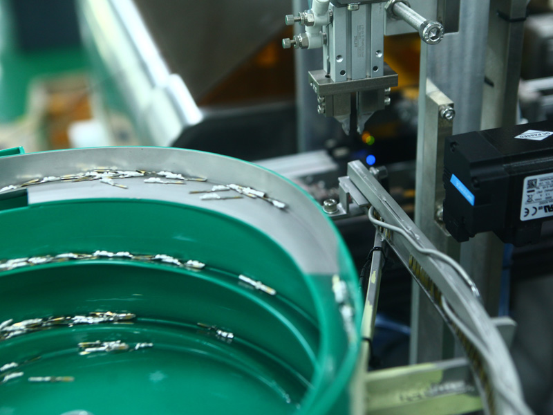 日精智能全自動單頭焊錫插殼機,支持散裝端子,機械手自動上料。 基本功能:裁線剝皮、焊錫、插入膠殼,CCD截面視覺檢測、焊接檢測,支持非標定制。